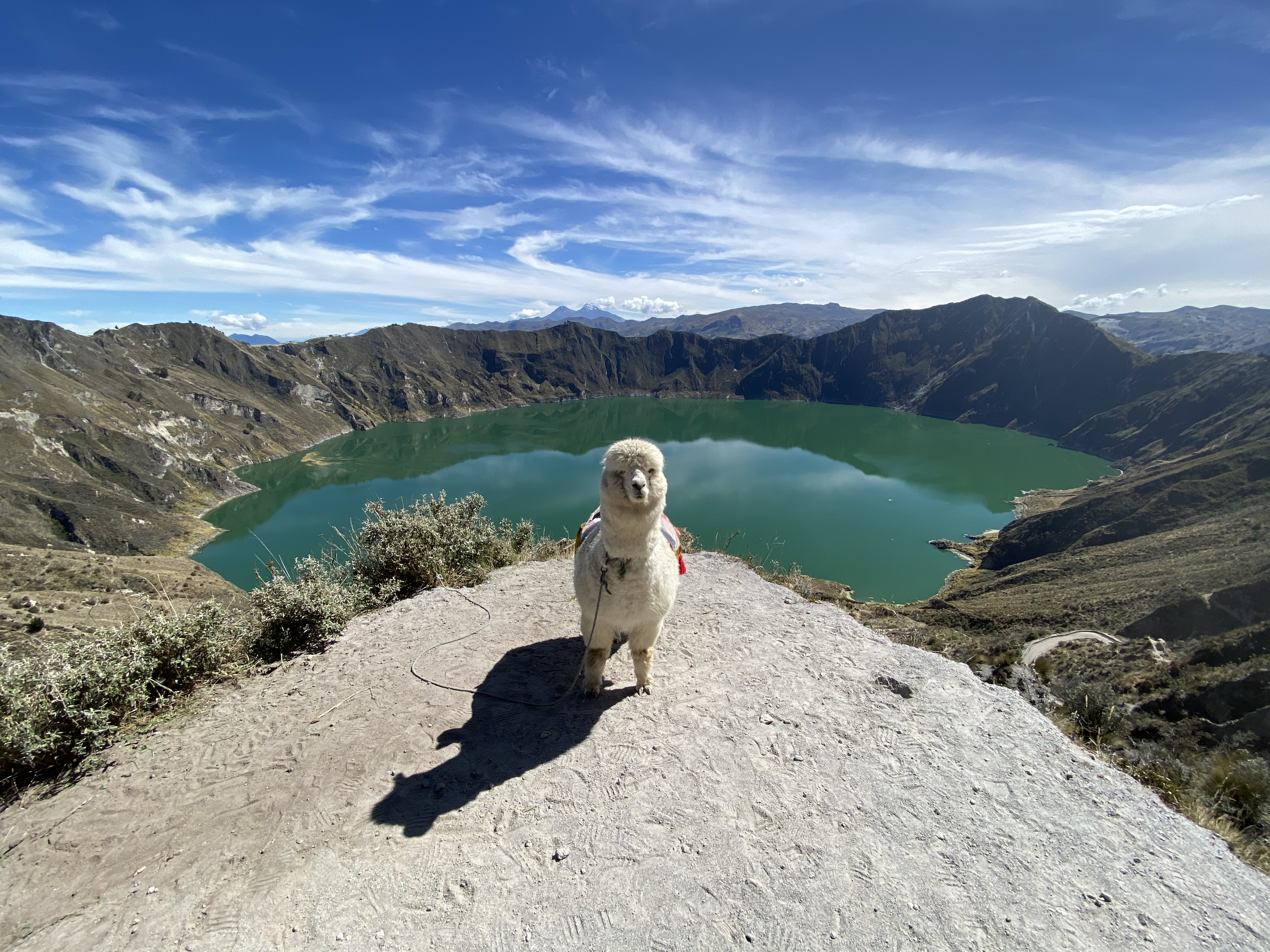 - Laguna Quilotoa: Quilotoa Crater Lake is one of the most beautiful volcano lakes in the Ecuadorian Andes. From the crater you can see various snow-topped volcanoes in the distance. When you arrive, you are at the viewpoint. You can hike down to the lake level, it takes about 25 minutes. Note that the pathway is mostly sand, so I would recommend wearing sandals. If you go down, you have 2 options for getting back up: hiking or taking a mule. The hike is really hard. You’re at a high altitude and because the pathway is sandy, there is a lot of dust in the air. It took me ~45 minutes to hike up, but it could easily take 2 hours. Make sure to bring lots of water! If you don’t want to hike, you can pay $10 to take a mule back up (this is what most people did).