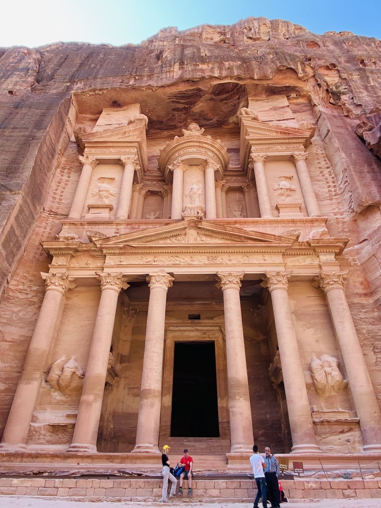 - Petra: Entry is included in the Jordan Pass. Petra is a ~3 hour drive from Amman. I found 1 day at Petra to be sufficient, but there are 2 and 3 day tours, as well. When you arrive at the ancient city, you walk ~1 mile through a canyon to reach the Treasury. The terrain is uneven, so I would recommend wearing good walking shoes. Once at the Treasury, there will be hagglers offering to take you to a viewpoint; the viewpoint is actually very nice and scenic, though I wouldn’t spend more than a few dollars to go. The Viator tour I linked above does not include a guided tour of Petra but you can buy one at the entrance, if you’re interested.