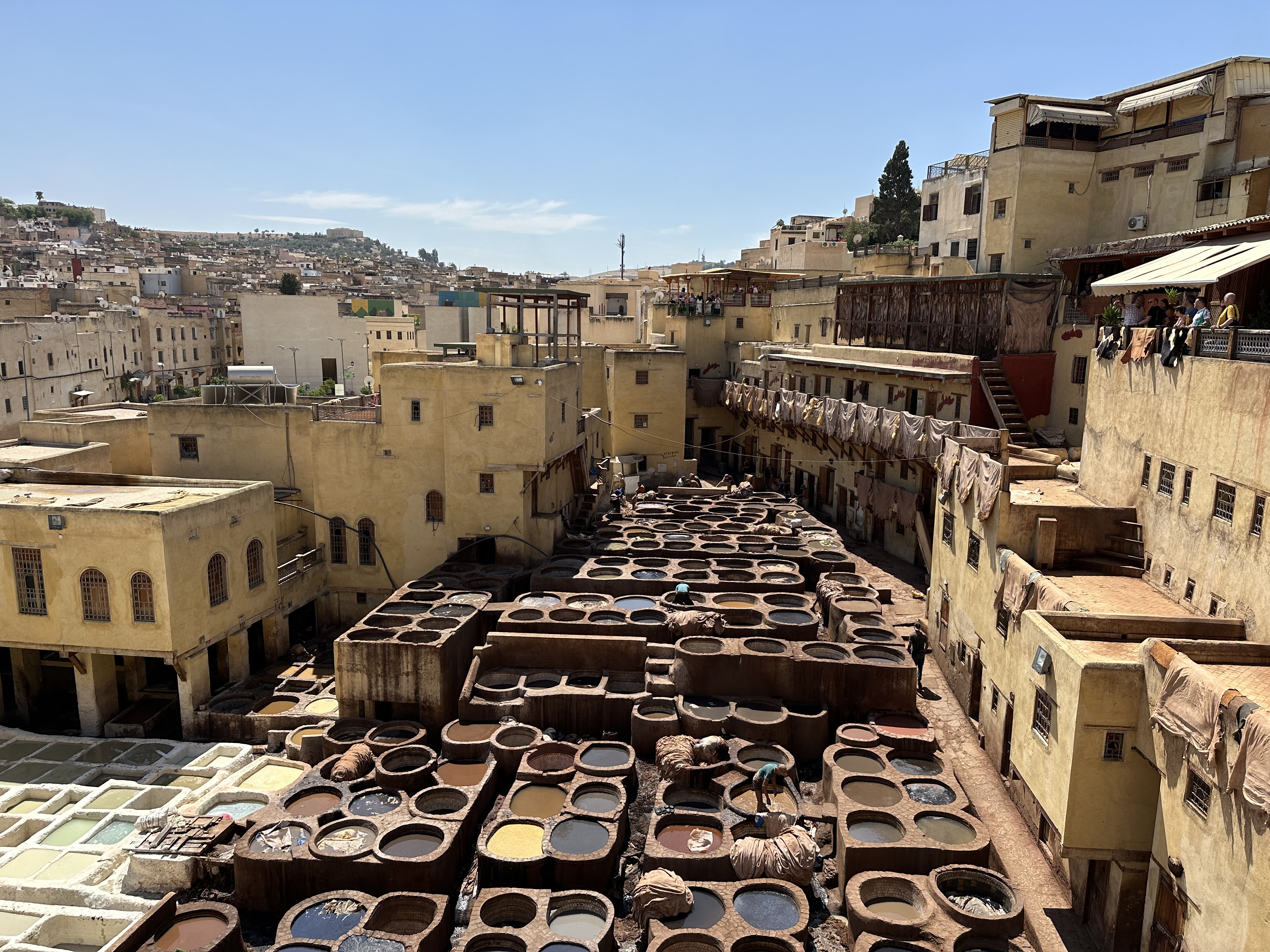 Background photo taken from the roof of the Chouara Tannery in Fes.